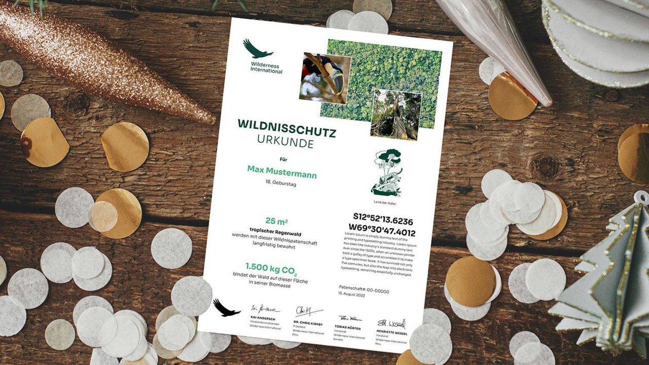 Du bist auf der Suche nach einer nachhaltigen Geschenkidee? Eine Wildnispatenschaft schützt ein Stück einmalige Natur für alle Zeiten. Verschenke ein Stück Zukunft!