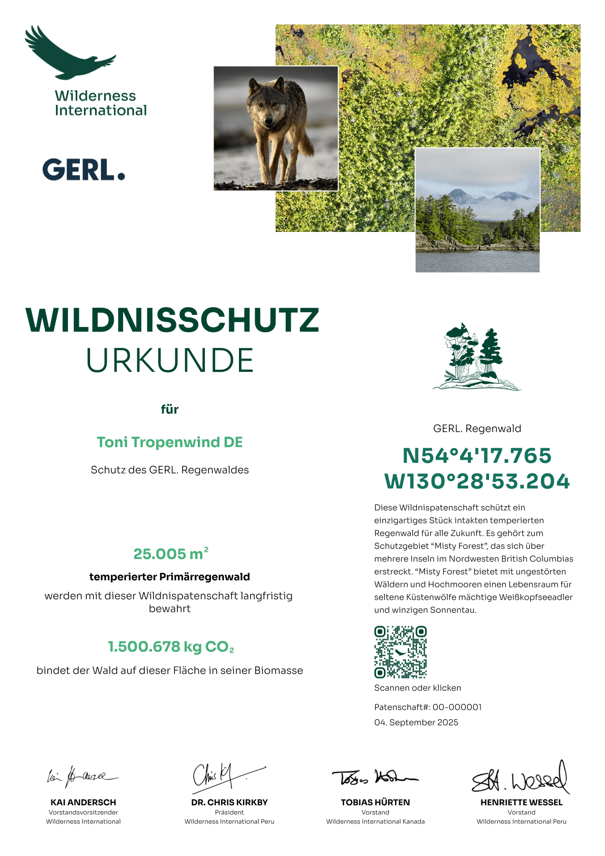Der Erhalt von alten intakten, aber bedrohten Lebensräumen mit einem Höchstmaß an Biodiversität und CO2-Speicherung ist für Unternehmen ein Weg, diese Verantwortung zu zeigen. In einer Kooperation mit Wilderness International erzielt ihr eine messbare Wirkung eures Engagements als naturbasierte Lösung zur Reduktion von Treibhausgasen (ESRS 1 Umwelt), als Förderung der biologischen Vielfalt (ESRS S4) und als ökonomischen Hebel für lokale Communities (ESRS S3).