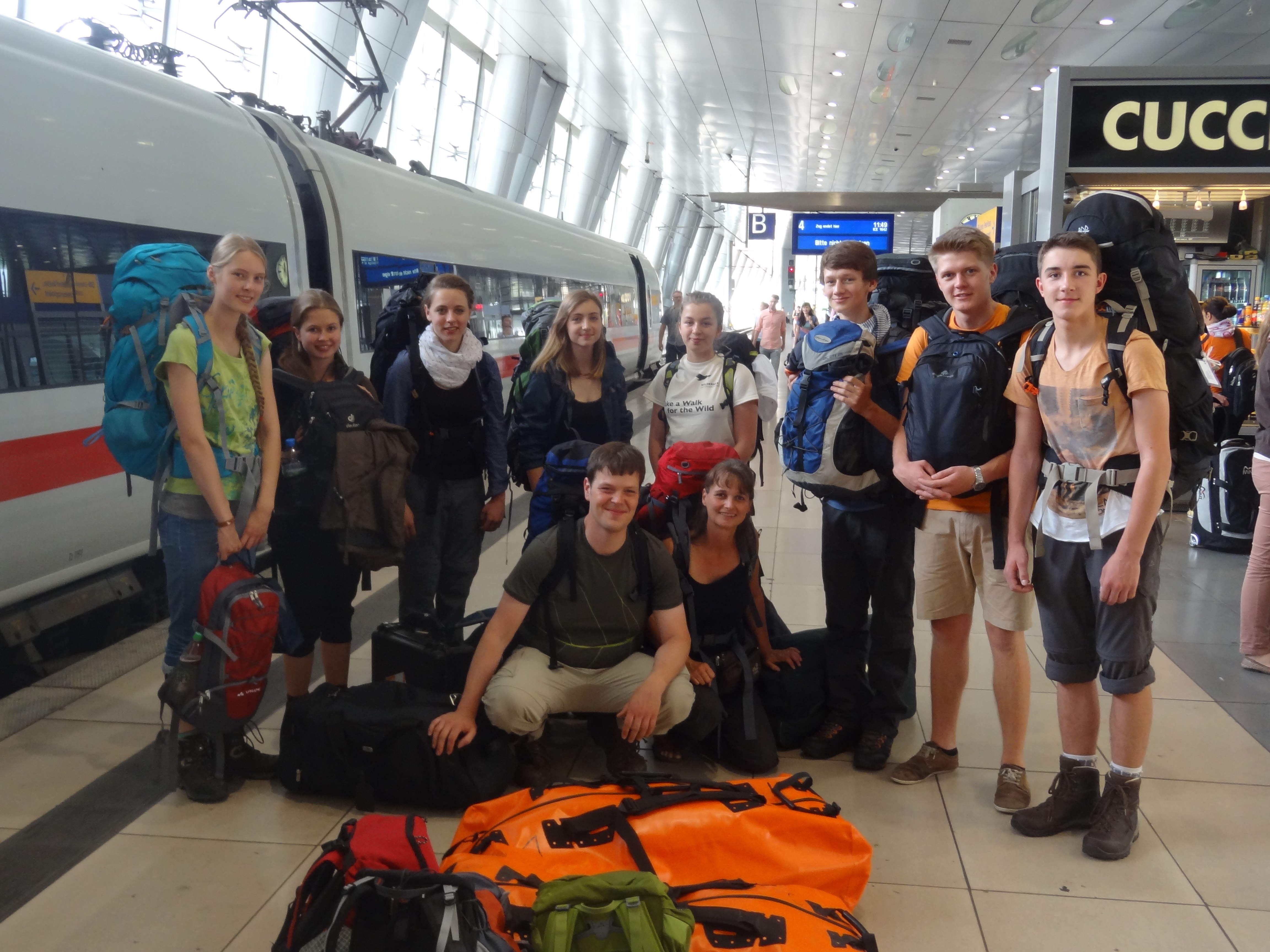 Um sechs Uhr (früh!) treffen wir uns am Bahnhof, um die große Reise anzutreten. Mitfahren darf allerdings nur, wer Hannes‘ Passkontrolle besteht, die während des Tages noch öfter vorkommen sollte. Die Vorfreude ist bei allen trotz der Müdigkeit riesig. Tobi freut sich zunächst vielleicht noch ein bisschen mehr auf die Flugzeuge, vor allem die ganz großen. Felix findet es immerhin „besser als Schule“. Vorne und hinten mit Gepäck beladen holt uns Pascale in Frankfurt ab. Zum Glück hat sie Kekse dabei, sehr sehr leckere (und vor allem sehr sehr viele) Kekse, die uns den gesamten Weg durch den nicht immer entspannten Sicherheitscheck versüßen. Pascale ist sehr erleichtert, dass sie dieses Mal ausnahmsweise nicht zur Sprengstoffkontrolle musst, und auch Lina, die zum ersten Mal fliegt, meistert alles ohne Umstände. Danach stößt auch Gudrun zu uns („Hallo Gudrun, möchtest du einen Keks?“), die aus dem fernen Österreich angereist ist.