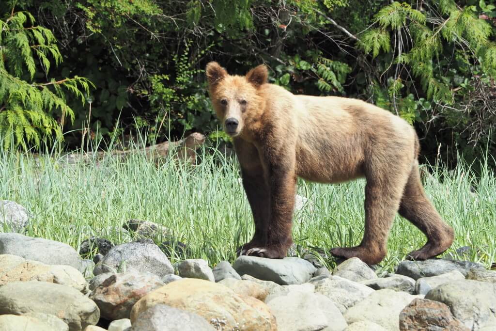 Das Highlight der Reise war es für mich auf unserer Anreise ins Tobatal einen jungen, vermutlich erst drei Jahre alten, Grizzly zu sehen, welcher am Strand unter den Steinen nach Nahrung, wie z.B. Krabben, suchte.