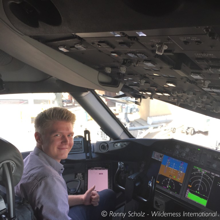 Wir fliegen von Frankfurt über Calgary nach Victoria auf Vancouver Island. Auf dem Flug von Frankfurt nach Calgary freunden wir uns so sehr mit der Kabinencrew an, dass diese uns kanadische Spezialitäten zum Besten gibt und am Ende Ronny und ich nicht nur ins Cockpit dürfen, sondern auch noch die Flugkarte des aktuellen Fluges von der gesamten Crew signiert bekommen. Wir genießen die Zeit an Bord mit Air Canada und sind uns einig: So angenehm wie mit Air Canada, mit einem so guten Service, einer so freundlichem Crew und solchen tollen Erlebnissen sind wir sonst noch nirgends geflogen.
