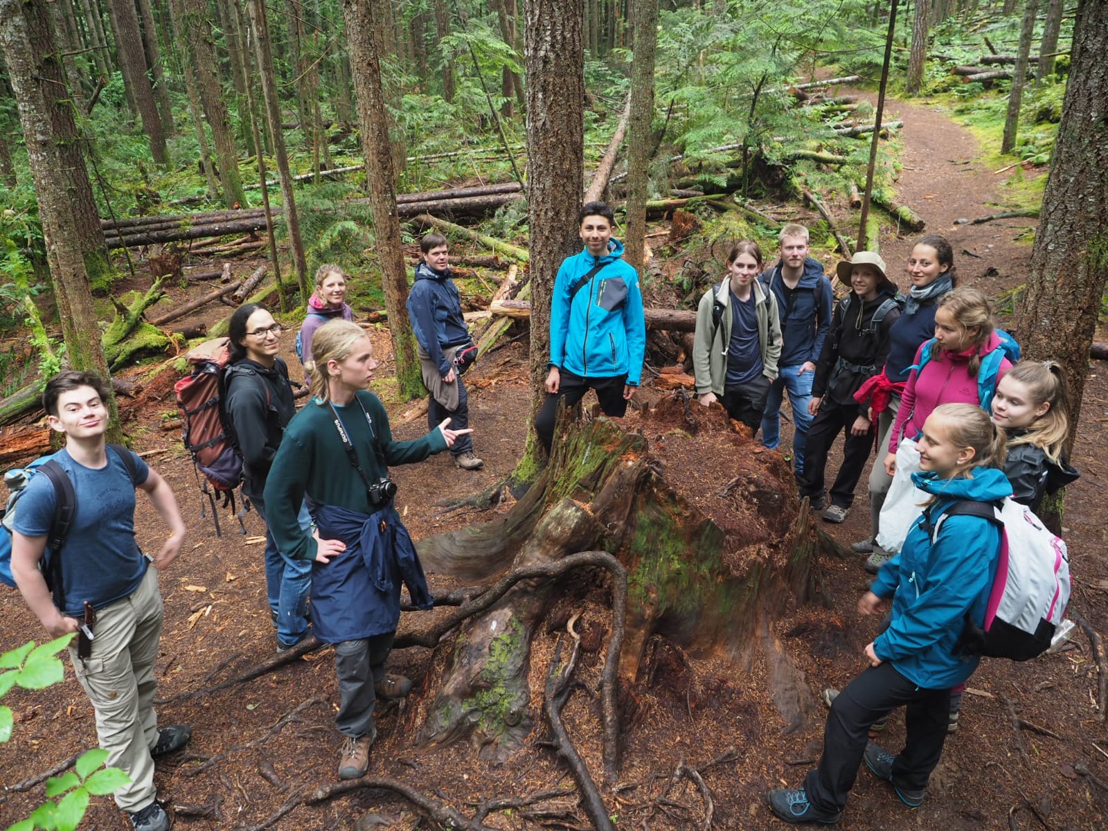 Mit einem kalten, kurzen und trotzdem ausgelassenen Badeausflug am Morgen vor der atemberaubenden Kulisse der nebelbedeckten Berge beginnt unser zweiter Tag in Kanada. Das folgende reichhaltige Buffet um 7:30 Uhr stillt unseren Hunger und lädt uns außerdem ein, unsere ersten Erfahrungen und Erlebnisse zu teilen. Danach nutzen wir als ganze Gruppe die Zeit bis zum Mittagessen, um uns zu organisieren und an unseren Projekten zu arbeiten. Ein Großteil der Stipendiaten genießt ein sehr interessantes und informatives Gespräch mit dem Biologe Mathias Nuss, des Weiteren kaufen wir Lebensmittel für die Expedition ein, die das großartige gesponserte Lyofood ergänzen, das uns auf dieser Expedition versorgen wird.