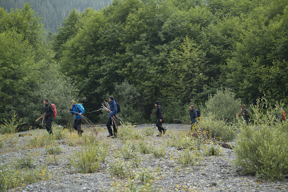 Neben Sebastians Ruf werden wir von einem konstanten Trommeln gegen die Zeltwand geweckt – der Regen hat über Nacht leider nicht aufgehört. Trotzdem machen wir uns, vermummt in Regenhosen und -jacken, auf den Weg (bzw. Pfad) in Richtung der Mia Falls. Der Elk Trail führt uns durch eine abwechslungsreiche Landschaft mit wunderschönen Blumenwiesen und stark bemoosten, beinahe gespenstig wirkenden Wäldern. Er verläuft entlang eines Flusses, welchen wir alle über einen umgekippten Baumstamm erfolgreich queren. Nach einem Picknick teilt sich unsere Gruppe – während ein Teil den Aufstieg zu den Mia Falls wagt, erkundet der Rest die Natur auf dem Rückweg zum Camp.