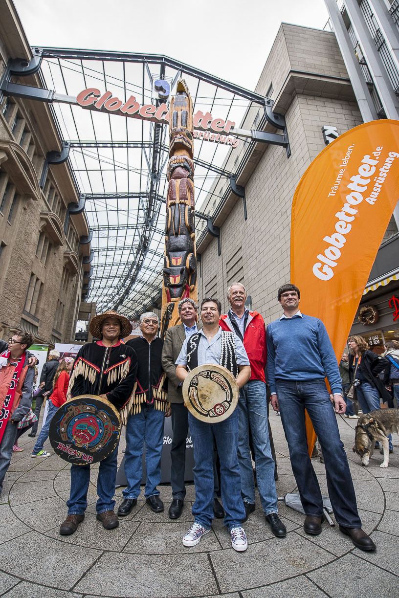 Allen, die die Zeremonie heute verpasst haben, bleibt der Trost, dass der größte Totempfahl Deutschlands noch sechs Monate vor dem Globetrotter-Store zu bewundern sein wird. Am 15. Mai 2014 wird er dann im Rahmen des Kölner Wildnislaufes als Dauerleihgabe in das Rautenstrauch-Joest-Museum überführt.