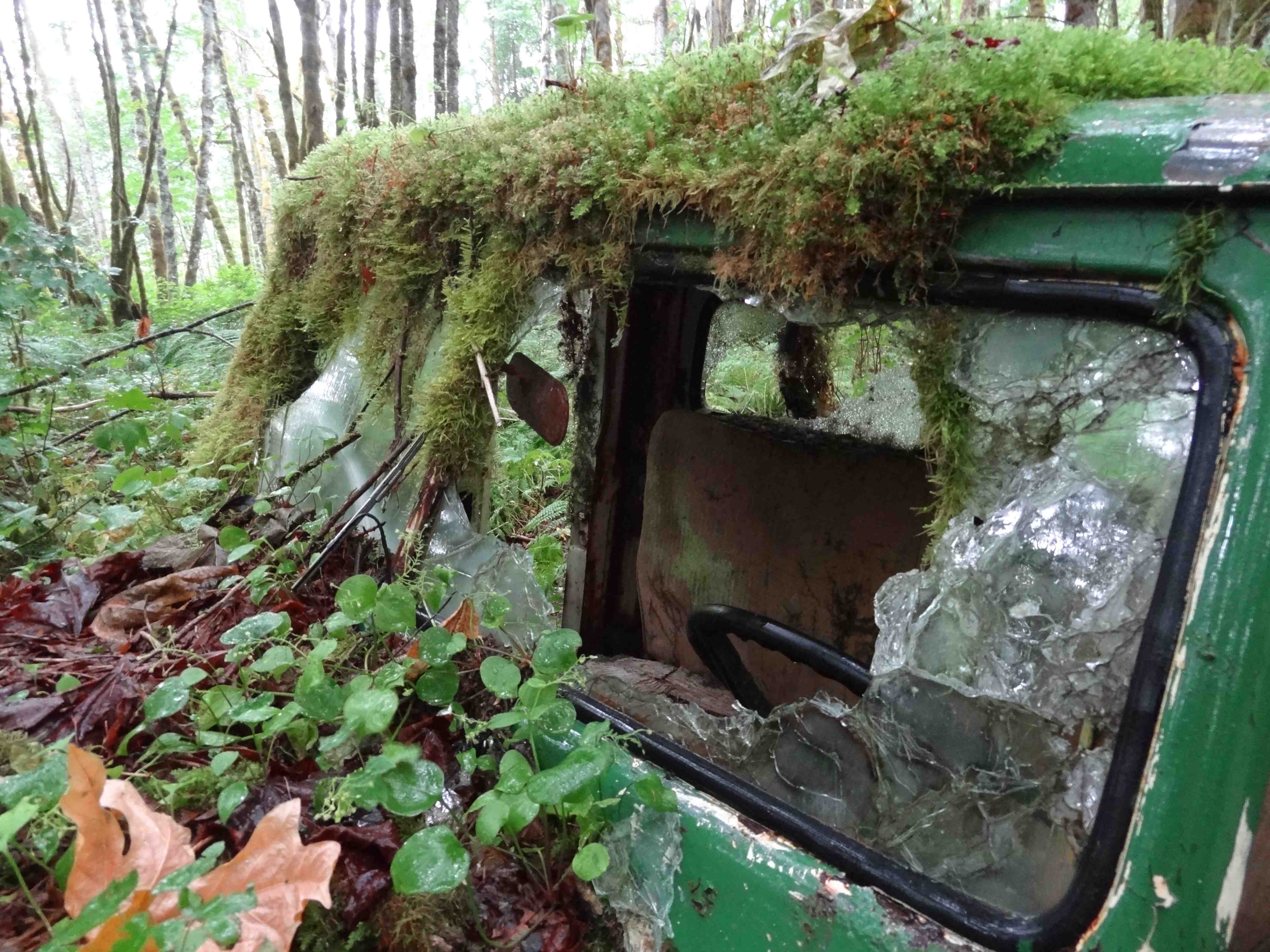Zusammen mit zwei Stipendiaten und der Filmcrew betrete ich den, wie ich finde, magischsten und aufregendsten Ort des Waldes. An diesem Platz steht ein altes Haus und Auto, welche vermutlich den Vorbesitzern gehörten. Das ganze Szenario sieht aus, als mussten sie den Ort fluchtartig verlassen. Es kribbelt in mir und der Wunsch, die Geschichte dieses Ortes herauszufinden, ist groß.