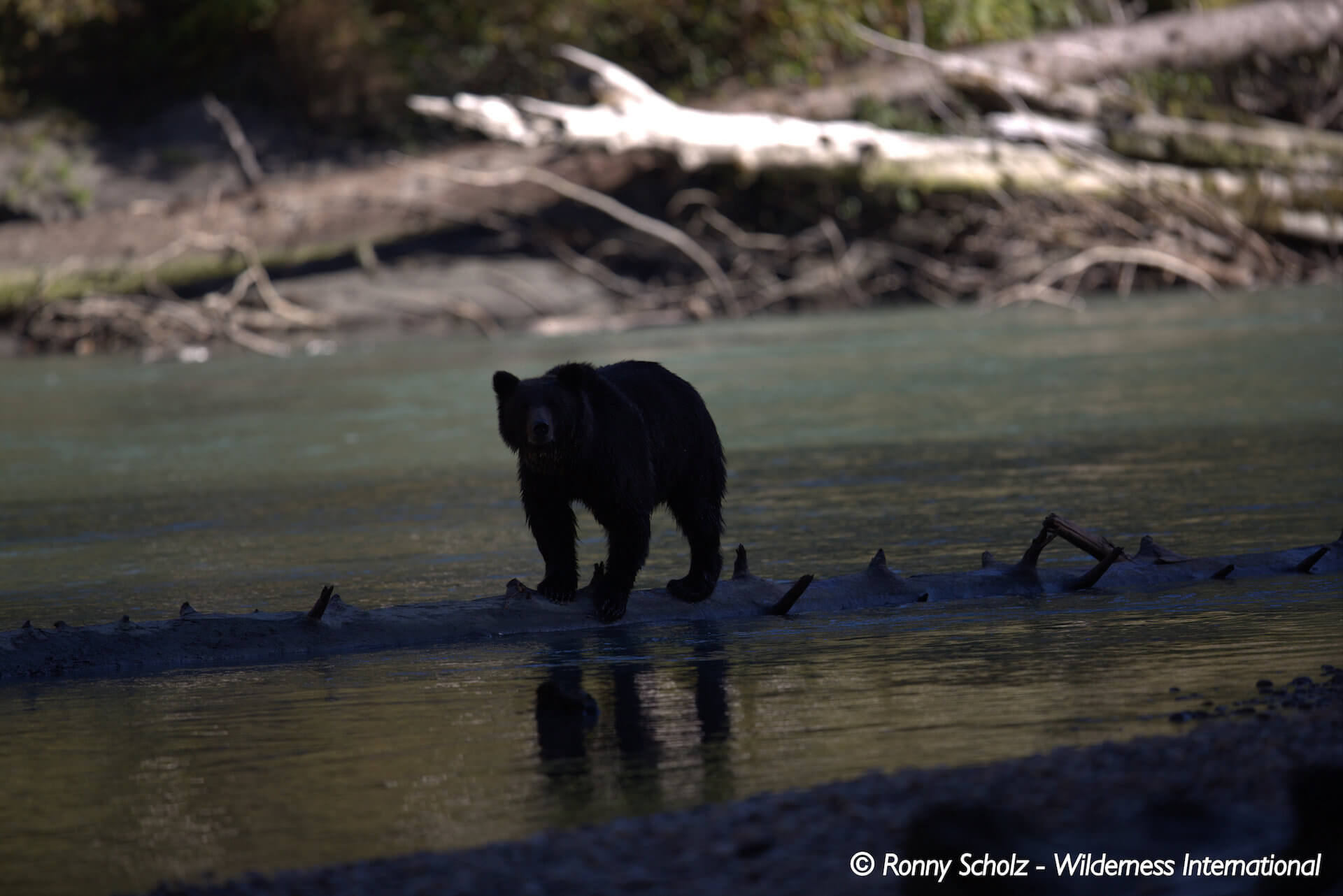 Doch auf einmal müssen wir unsere Pläne ändern: Es wird früher dunkel als gedacht und wir schaffen es nur die halbe Strecke den Fluss hinauf bis zu unseren Landstücken. Kurz bevor wir auf der Sandbank anlanden entdeckt Thomas die erste Bärenmutter mit zwei Kindern. Wir sind da, und die Bären sind auch da. Jedoch verkrümeln sie sich schnell wieder in den Wald.