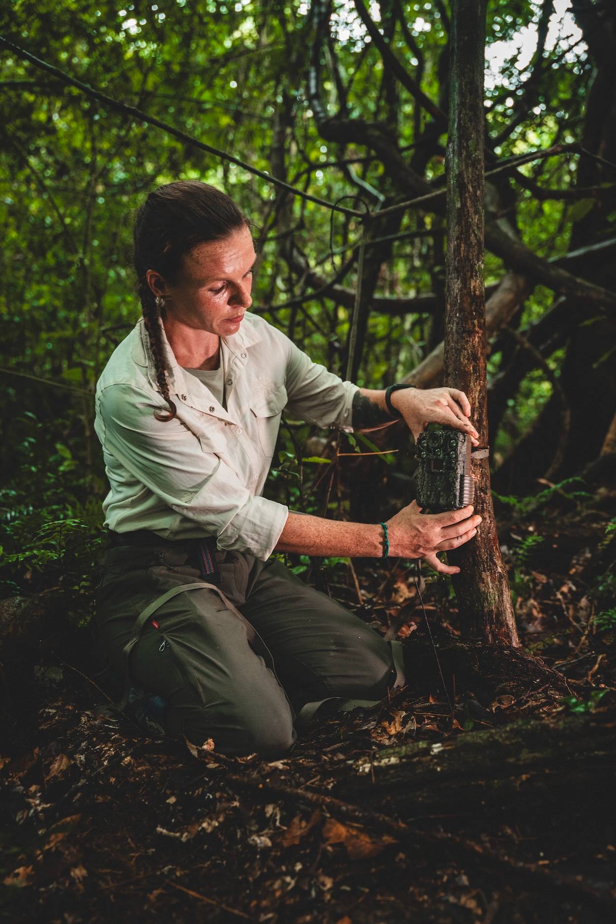 Neben der wissenschaftlichen Arbeit hab ich gemeinsam mit unserer Cooperation und Special Project Managerin Chris Hoffmann und meinem kanadischen Kollegen Marco Lou die Expeditionsplanung, Camp-Organisation und Datenmanagement koordiniert – vom täglichen Ablaufplan bis hin zur logistischen Abstimmung unseres Equipments, damit alle Teams effizient arbeiten konnten. Besonders bereichernd fand ich vor Ort auch die Zusammenarbeit mit langjährigen Partnern wie Dominik Günther von DIAMIR Erlebnisreisen sowie neuen Partnern wie Angélique Vacher von Caudalie. Beide waren mit im Schutzgebiet, um sich ein Bild von der Wirkung ihrer Spenden zu machen und unsere Projekte noch besser zu verstehen. Gleichzeitig packten sie tatkräftig mit an – sei es beim Tragen schwerer Ausrüstung durch den dichten Wald oder hochmotiviert beim Kochen in der Camp-Küche.