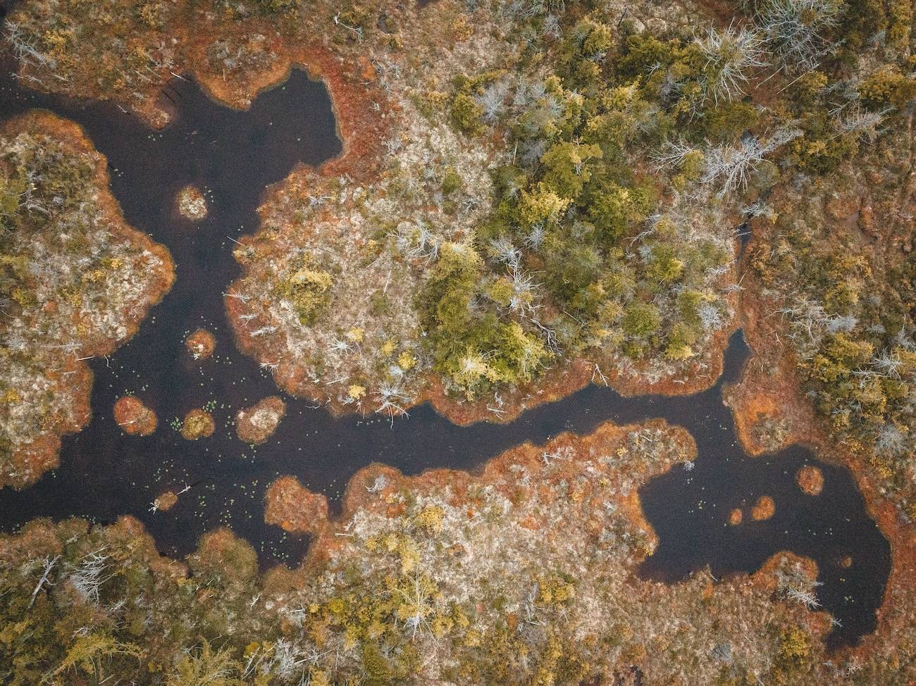 Dieses Moorlandschaft nennen die Kandier:innen "Muskeg". Dabei handelt es sich um ist ein Mosaik aus kleinen Wasserflächen, Bauminseln und feuchten Mooskissen. Durch die vielfältigen Strukturen entstehen zahlreiche ökologische Nischen.