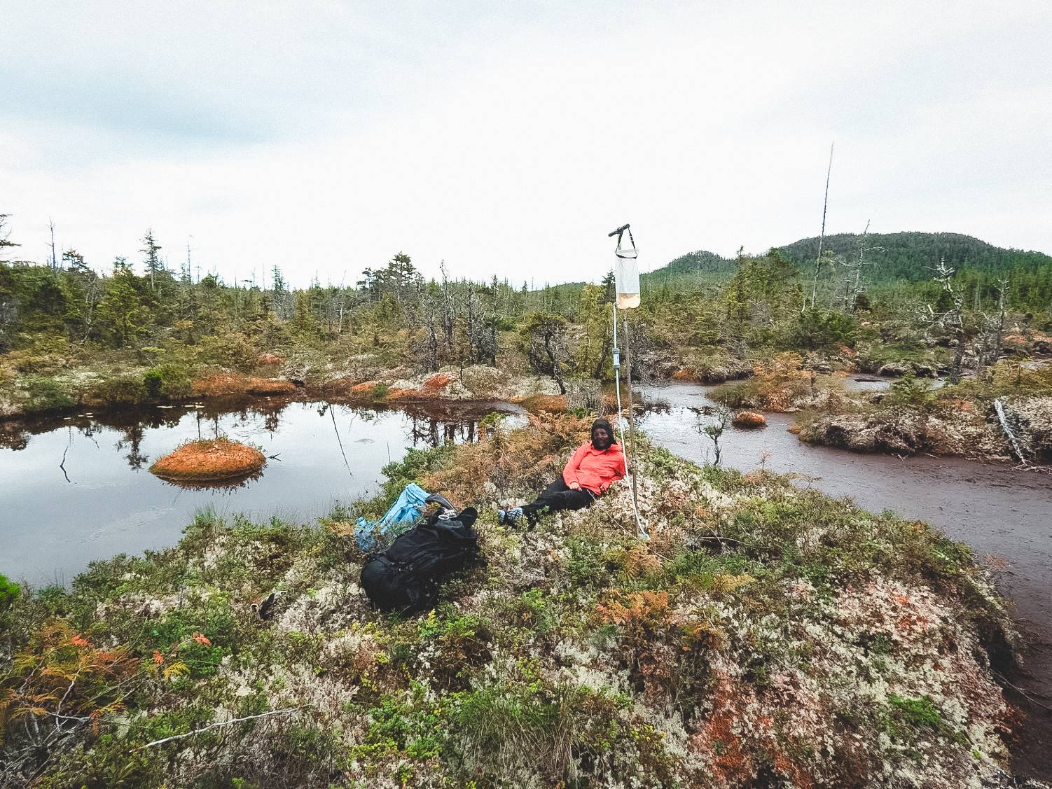 Tägliche Märsche über Strände mit schwerem Bohr-Equipment, Trinkwasser aus dem Moor filtern, wechselhaftes Küstenwetter und Stiche ohne Ende von Sandfliegen, Bremsen und Mücken (denn Insekten lieben Moore!). Was für viele nach Herausforderung klingt, ist für Jürgen und Hanna nur Randbedingung. Durch unsere Expedition hatten sie die einzigartige Gelegenheit, ein nahezu unerforschtes Ökosystem aus nächster Nähe zu studieren. „Jeder Schritt über die federnden Sphagnum-Moospolster erinnerte uns daran, wie lebendig und intakt dieses Ökosystem ist und wie wenig wir eigentlich darüber wissen“, berichtet Hanna Martens. Sie ist selbst Kanadierin und forscht vor allem zur Wiedervernässung von Mooren. In ihrer Heimat hat sie schon viele durch Öl- und Gasförderung degradierte und zerstörte Moore gesehen.