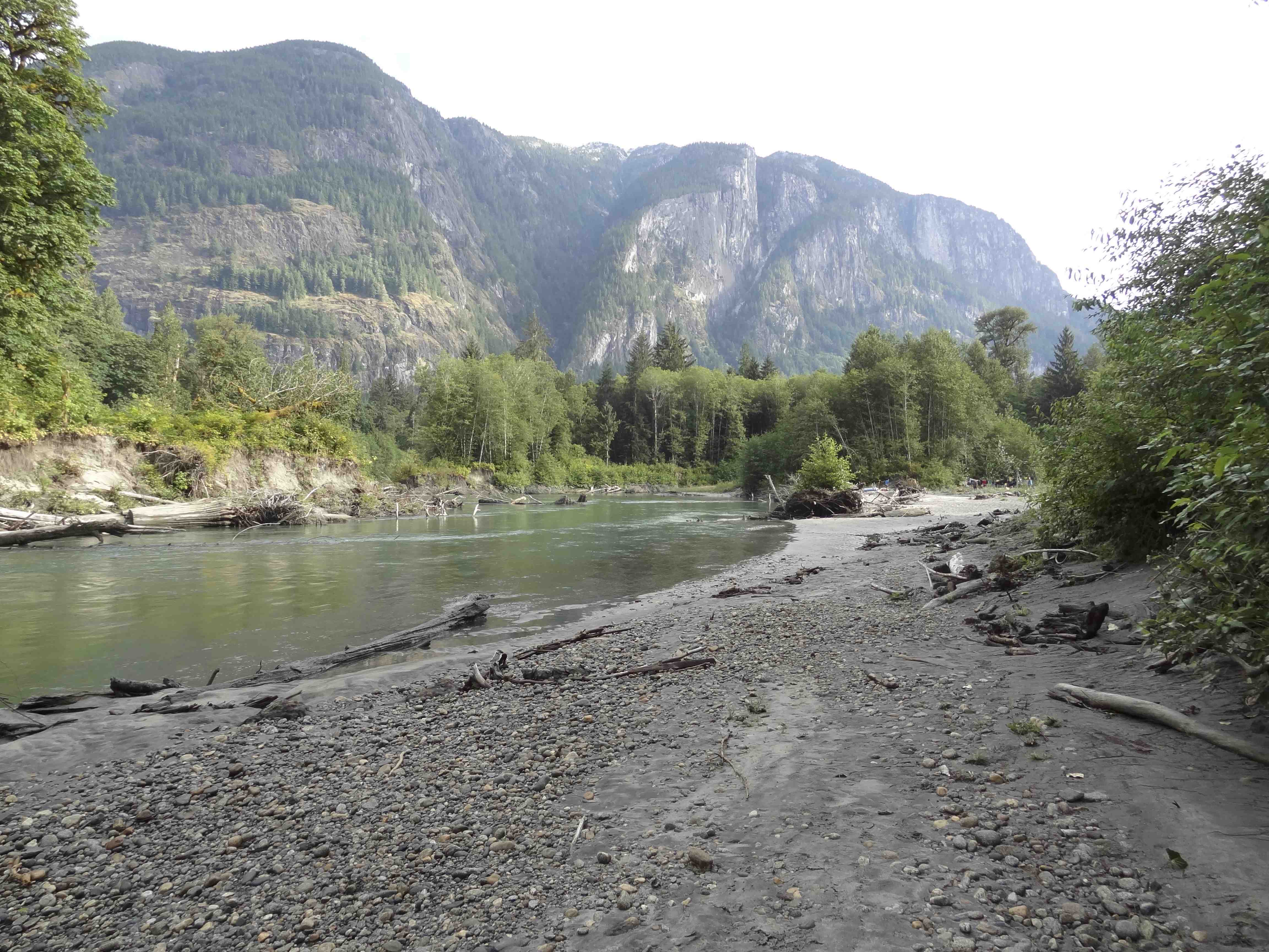 Als die Vermesser zurückkehren, entnehme ich einem Interview mit Pia, dass die Plotsuche wirklich nur bei einer Plotsuche blieb. Obwohl sich Kai alle 10 Minuten zu 100% sicher war, dass sie direkt vor dem Plot stehen, kamen sie doch nie an. Vielleicht lag es an dem Devil’s Club? Oder an dem riesigen giftigen Tausendfüßler? Wer weiß. Doch Pia macht das alles nichts aus. Sie überquert den Fluss zurück nach Hause zwar nicht hochmotiviert, aber immerhin auch nicht niedergeschlagen: Aus der Ferne beobachten wir belustigt die Heimkehrer, wie sie uns mit vollstem Körpereinsatz zu demonstrieren versuchen, wie man sich bei einer Bärenbegegnung NICHT verhält, aber offensichtlich sehr viel Spaß dabei hat.