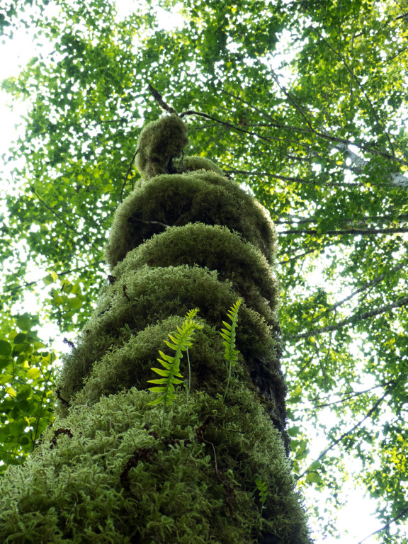 Als ich also in sein grinsendes Gesicht sehe, wird meine Laune schlechter und in mir wächst das Gefühl, sich rächen zu müssen, da er es tatsächlich geschafft hat, vor dem Rest der Gruppe zu erwachen und mich so dämlich zu wecken. Aber mir wird kurz darauf klar, dass diese Aktion gut war, denn wir müssen von der oberen Sandbank zur unteren kommen. Da wir zu viel Gepäck haben, kommen wir erst 2 Stunden nach Plan los und müssen uns mit viel Übergepäck durch den Wald schlagen. Mit den gefühlten 40 kg pro Person ist dies sehr anstrengend, dafür können wir aber schöne, stark bemooste Ahornbäume sehen.