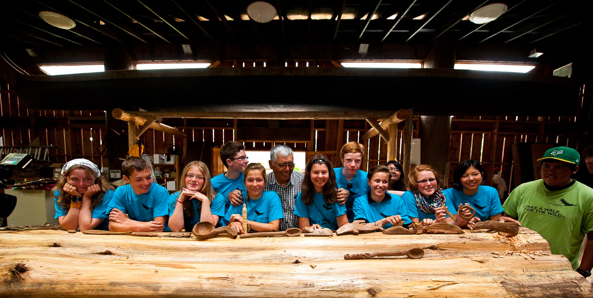 Am heutigen Vormittag sollten wir aber noch einmal etwas sehr Besonderes erleben können. Uncle Harold, der Cowichan Elder, welcher uns während der gesamten Reise begleitet hat und von dem wir alle so viel gelernt haben, hat uns eingeladen. Er wird aus Riesenlebensbäumen ein Kanu schnitzen. Diese Bäume sind mittlerweile ebenso selten wie die traditionelle Schnitzkunst.