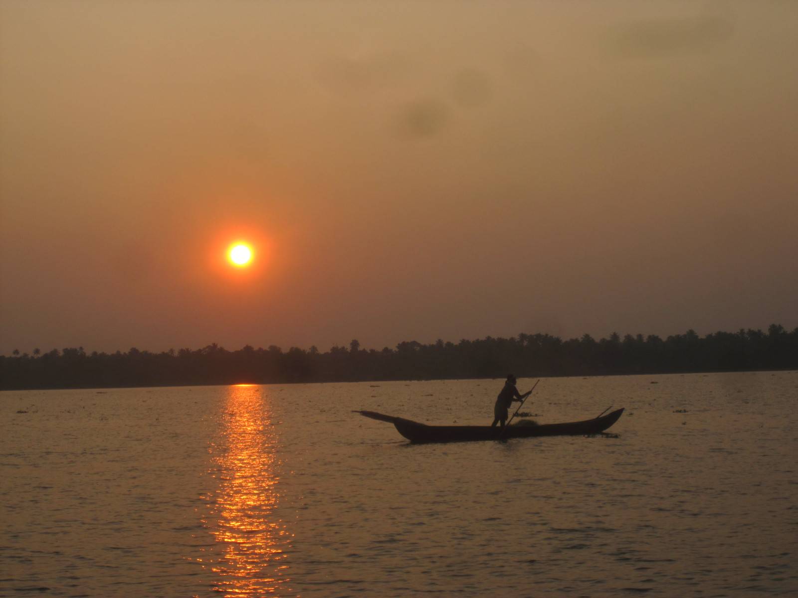 Handelte es sich um eine Kreuzfahrt oder einen Interkontinentalflug könnte man aus westlicher Perspektive diese Wartezeit in Anbetracht der Komplexität des Vorhabens nachvollziehen und in Rücksicht auf die eigene Sicherheit vielleicht wohlwollend zur Kenntnis nehmen. In jenem Fall handelt es sich jedoch kaum mehr um einen Vorgang der besonderer Sorgfältigkeit bedarf, sondern gerade in den Backwaters kein Wimpernzucken verlangt. Denn die kleine hölzerne Fähre stellt vielmehr eine Art einfachen Bus für die Bewohner diese Landstriches dar. In den Backwaters, einem verzweigtes Wasserstraßennetz im Hinterland der Malabarküste im südindischen Bundesstaat Kerala sind sie auf Kähne und Barken angewiesen, denn die Wasserstraßen erstrecken sich auf einer Fläche von insgesamt 1900 km² über insgesamt rund 1500 Kilometer teils natürliche, teils künstlich angelegte Kanäle.