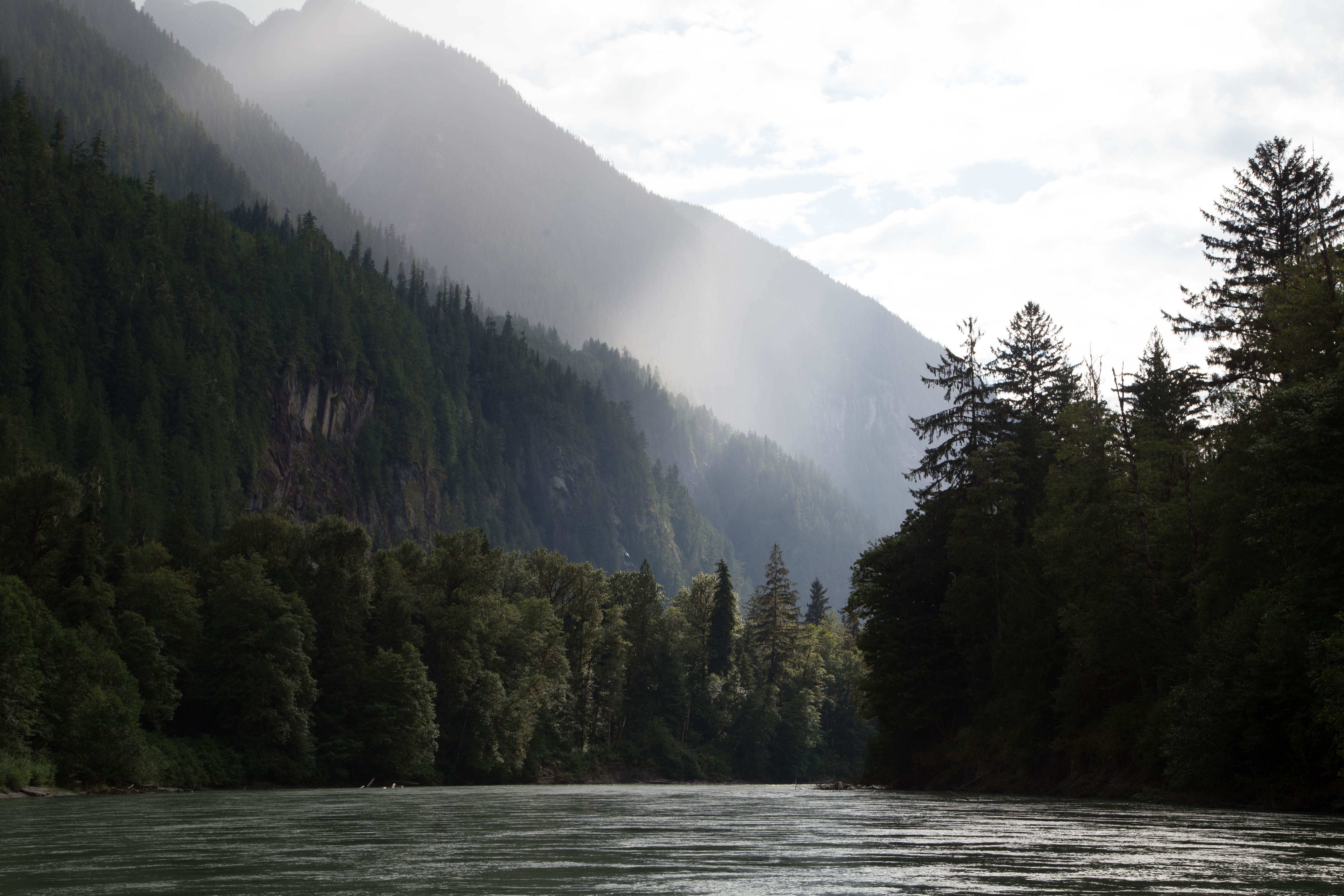 Bald machen wir uns wieder auf den Rückweg. Unerwartet finden wir dann doch noch das eigentliche Ziel unserer Wanderung: den Plot zur Baumvermessung. Noch schnell Feuerholz sammeln, Spuren suchen und ab nach Hause. So schaffen wir es dann nach 6 Stunden endlich im Camp anzukommen, wo der kühle Fluss und der Kuchen schon auf uns warten. Hier habe ich nun endlich wieder Zeit an die Begegnung von heute morgen zu denken. „Der Geruch von Kuhfladen und Pferd?“, fragt Sami, „das ist ein Wapiti-Hirsch!“ Wow. Heute Morgen stand dieses Tier nicht mal 10 Meter von mir entfernt im Wald.