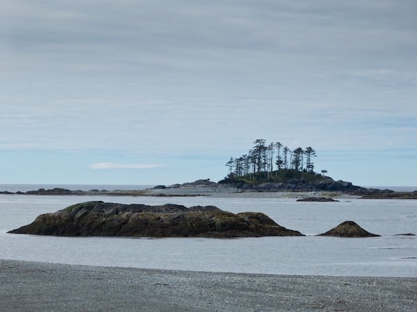 Wir landen nun aber an der Nordwestküste der Insel, und mittlerweile liegen doch wieder einige Kilometer Luftlinie zwischen uns und dem Rest der Welt. Von dem Landweg ganz zu schweigen: für wenige Kilometer braucht man hier Stunden, denn sie führen entweder durch das dichte Unterholz und zwischen den massiven Stämmen der Urwaldbäume hindurch. Oder in unzähligen Windungen die Küste entlang, hinauf und hinab an den rutschigen Felsen der Gezeitenzone. Dementsprechend vorsichtig bringen wir unser Gepäck ins Camp, balancierend und rutschend über lockeres Geröll und spitze Felsen. Wir sind jetzt merklich in der Wildnis – wo es keine bequemen Wege gibt, Adler über den Köpfen kreisen und man von Seeanemonen und Seepocken auf dem Weg begleitet wird. Bei der Anlandung des Boots begrüßte uns aber erst einmal Fabian, Fotograf und Biologe, der schon einige Tage auf der Insel verbracht und die Wölfe und anderen zahlreichen Tiere der Insel beobachtet hat. Er ist sichtlich erfreut, wieder Menschen um sich zu haben und zeigt uns stolz sein kleines Camp inmitten von gigantischen Riesenlebensbäumen, die majestätisch über der Küste thronen.