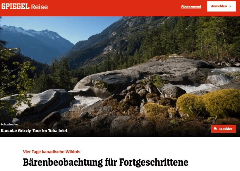 „Das Toba Inlet ist eines der letzten komplett wilden Täler British Columbias. Wer Grizzlys in freier Natur beobachten will, kommt hier auf seine Kosten – mit etwas Glück. Doch so eine Tour ist nichts für Zimperliche.“