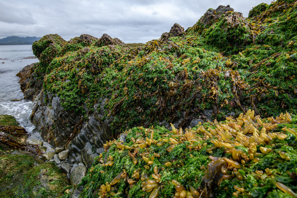 Ebbe und Flut bestimmen den Rhythmus des Landes und seiner Bewohner. Wenn sich das Wasser zurückzieht, gibt es das reiche Leben der Gezeitenzone frei: Napfschnecken sind fest an die rutschige Oberfläche der Steine gesaugt, die weichen Tentakel der Grünen Riesenanemone leuchten in einem Gezeitenbecken, und spitze Seepocken, sprenkeln die schwarzen Kliffe.