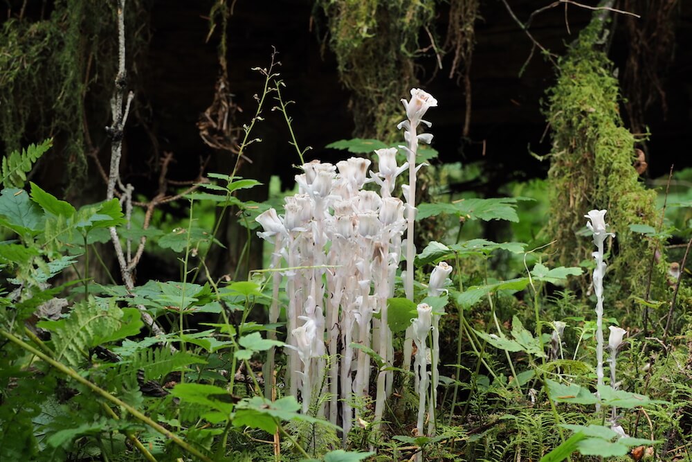 Im Land der Geisterblumen haben wir die an Höhe, Dicke und Alter beeindruckendsten Baumexemplare gesehen. Zu ihren Füßen wachsen unscheinbare Geisterblumen. Als Saprophyten ohne Chlorophyll ernähren sich diese winzigen Blumen von den Säften der riesigen Urwaldbäume, mit denen sie über das Wurzelgeflecht von Pilzen verbunden sind. Unheimlich selten sind sie wegen ihrer extravaganten Lebensweise, und doch haben wir ganze Teppiche von ihnen gefunden.